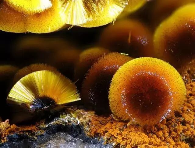 与赤铜矿相反,黄磷铁矿(Cacoxenite)的“毛球”都长得十分规整。图片:Christian Rewitzer / mindat.org