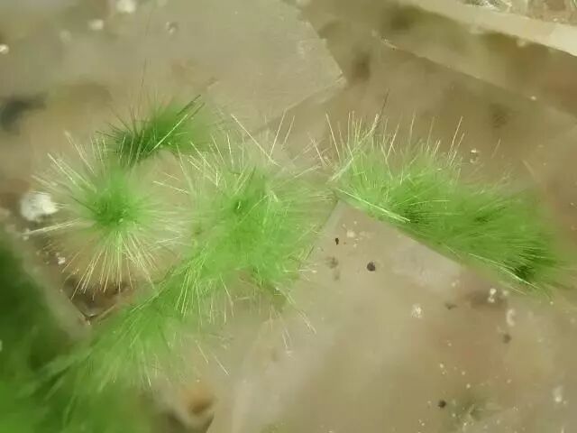 其实对于矿物收藏者来说,这类“毛毛矿”虽然好看又可爱,但是一旦涉及到运输,就特别要命。这些小“毛球”不能磕又不能碰的,只能牢牢地固定在一个空间里,平平地用手端着,才能勉强不掉“毛”。走快递?还是省省吧。