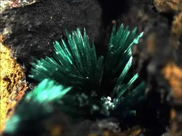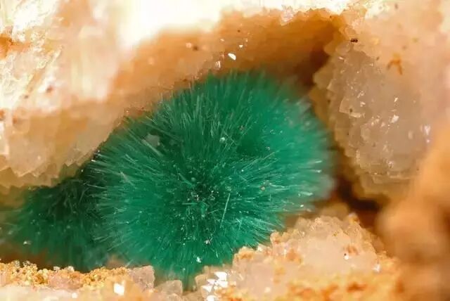 变身“毛球”之后,孔雀石长这样。图片:Giovanni Golinelli / mindat.org
