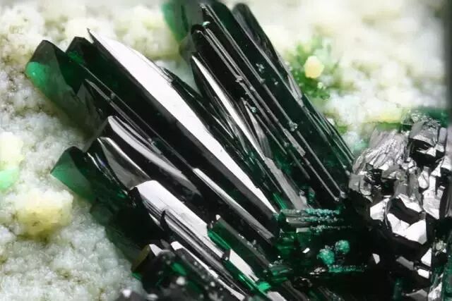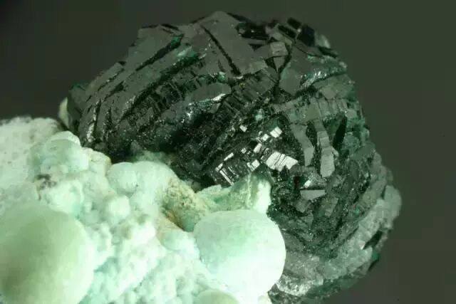 既然说到铜矿,就不得不说说孔雀石(Malachite)、氯铜矿(Atacamite)和水胆矾(Brochanite)这“安能辨我是雌雄”的一家子。严格来说,当这三种绿色含铜矿物规规矩矩长成晶体的时候,区别还是挺明显的,怕就怕它们长成“毛球”。