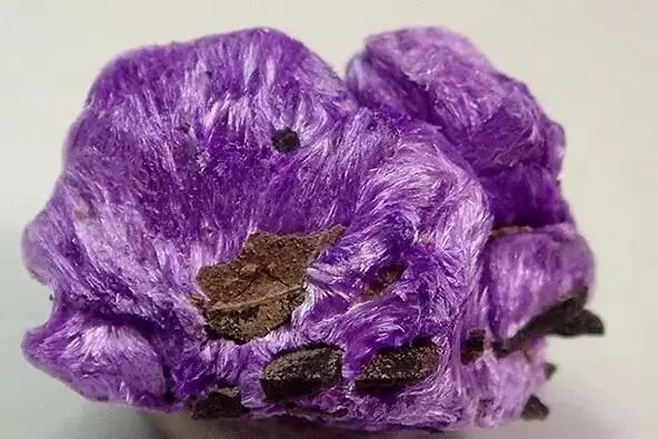 苏纪石(Sugilite)的毛……呃好吧不球,但是看上去摸起来会很顺滑!图片:jillkmf / mindat.org