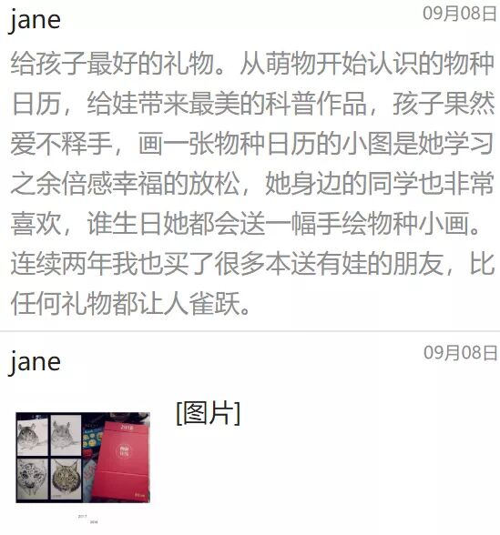 果壳八岁了,很多果壳er也有了小小壳er。日历娘常常会收到他们把《物种日历》当作孩子识图、识字卡片的“战报”: