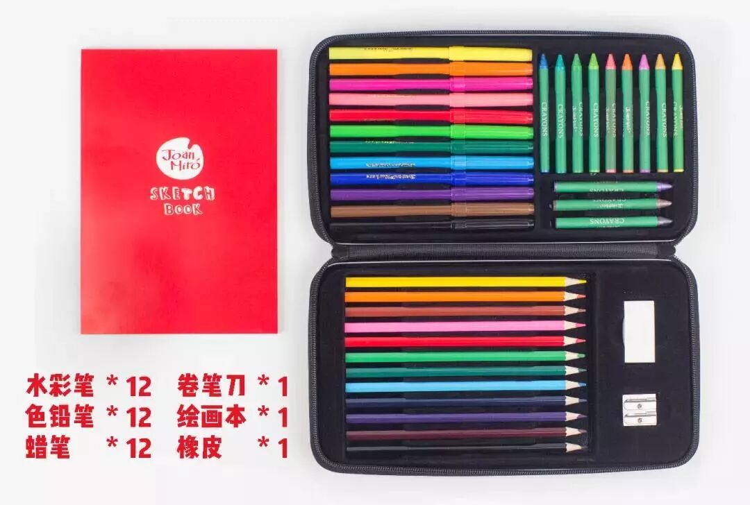 注:涂鸦工具套装包含一套水彩笔、一套蜡笔、一套彩铅、一块橡皮、一个双孔卷笔刀、一本绘画本