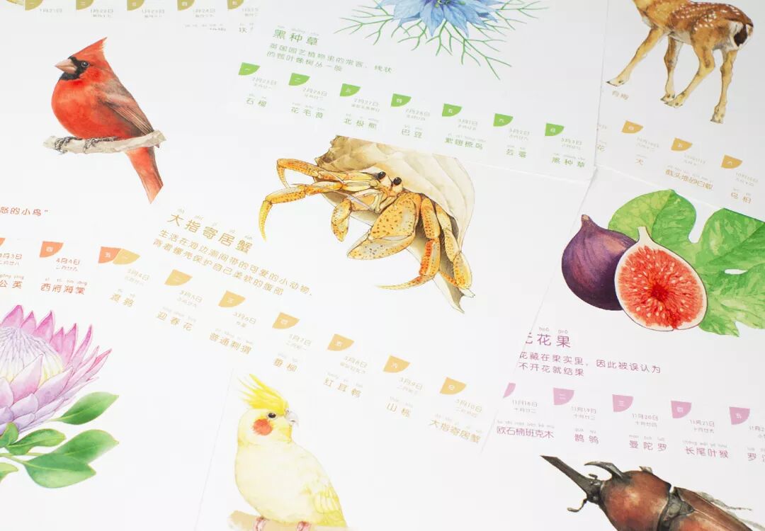 查证这样一个细节并不容易,花上半天、一天都是常事儿,而这,还仅仅是科学插画的部分。365天动植物的选择、安排、学名、简介等等,每一个科学细节都需要查证、打磨。日历的设计、用纸、包装每一年都在改进,只为让它来到你手中时更完美、更好用。
