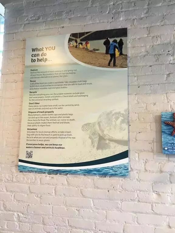 水族馆的大厅里,挂着海洋塑料垃圾拼成的企鹅,餐盒、一次性刀叉组成的躯体触目惊心,旁边就是“我们能做什么”的科普展板。塑料垃圾似乎是一个我们每天都会产生但明显不可持续的环境因素,时时刻刻质疑着人类作为地球一员的所谓理性,我以后会更详细地谈谈这个问题。