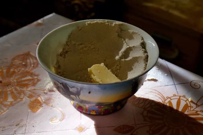 糌粑和酥油,用奶茶和匀后捏成一团吃。图片:山子