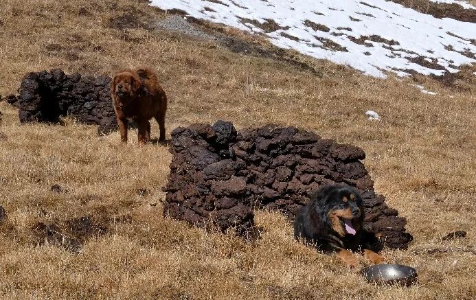 牦牛粪堆,既是储备燃料,也是狗狗温馨的家。图片:山子
