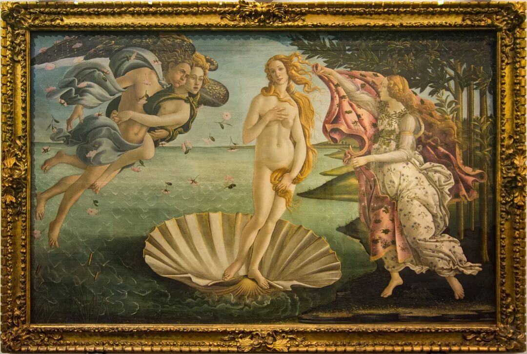 乌菲齐美术馆收藏的波提切利的名作《维纳斯的诞生》。不要疑惑,在罗马,阿弗洛狄特的名字就是维纳斯。图片:老猫