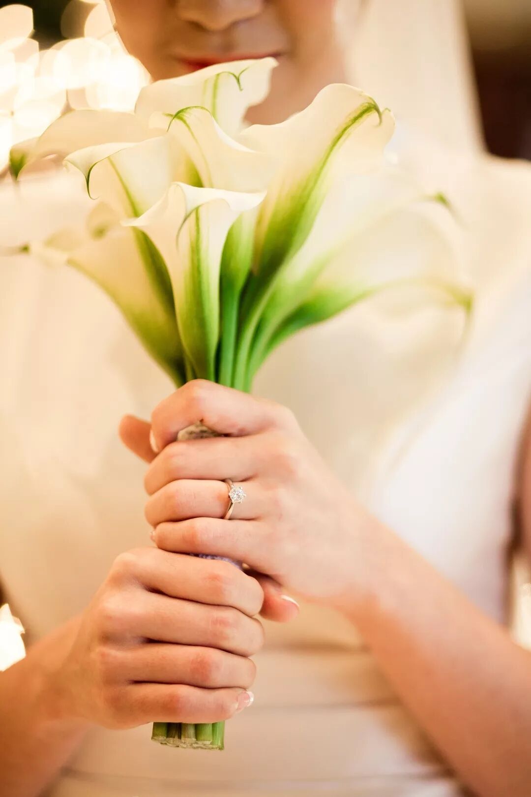 质量好的马蹄莲花莛粗质地坚实,雪白的佛焰苞还未完全张开,半卷着还能看到其中鹅黄色的花序。这样的马蹄莲适水性很好,价格也不贵,大约30多块钱可以买到两三扎。它们的切花尺寸可以达到60厘米以上,最适合买回家插在高高的玻璃筒瓶里,非常典雅。怪不得欧洲人非常喜欢把马蹄莲作为婚礼花束——素雅的颜色搭配洁白的婚纱,的确很衬。