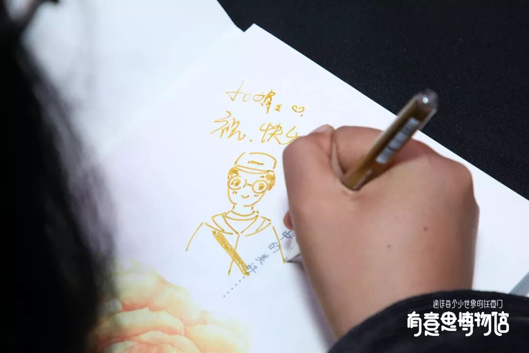 在这个周末一共有7位大咖,空降“有意思博物馆”。他们不仅为来到现场的粉丝写上了祝福的话语,还“顺手”现场作画。收获签名的同时还有可以收获独家的肖像画和合影!