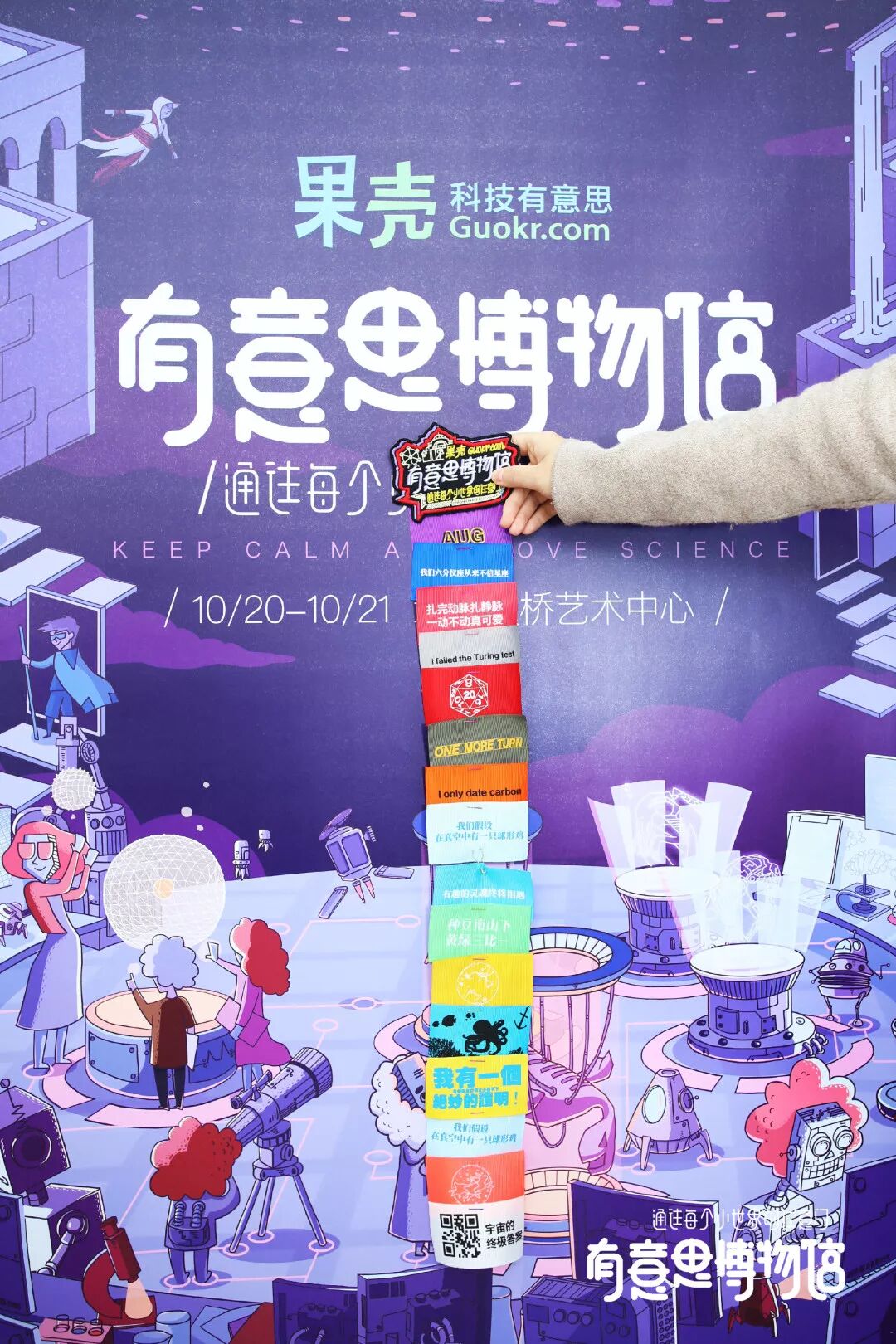 攥着手里的仅有一个开头的丝带,带着悔恨的泪水。结束了今年的文创之旅。没有收集到科学梗丝带的痛,让我长了记性,下次果壳的文创市集,我一定要起大早去排队!