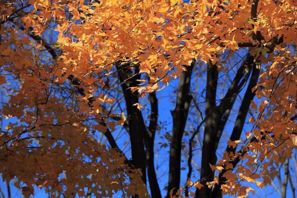 北方的秋天是最美的,多晴天且干燥而少雨,昼夜温差大,有利于叶绿素的分解和花青素的积累,使多种落叶树呈现出惊艳的色彩变换。常见的秋色叶植物中有黄色叶的银杏、鸡爪槭、七叶树、鹅掌楸、柿树、栾树、元宝枫、白蜡、榆树、榉树、蒙古栎、杨树、白桦、胡杨等,还有红色叶的黄栌(香山红叶)、地锦(爬山虎)等,国外引进植物中色叶效果好的还有五叶地锦、火炬漆(鹿角漆)等。