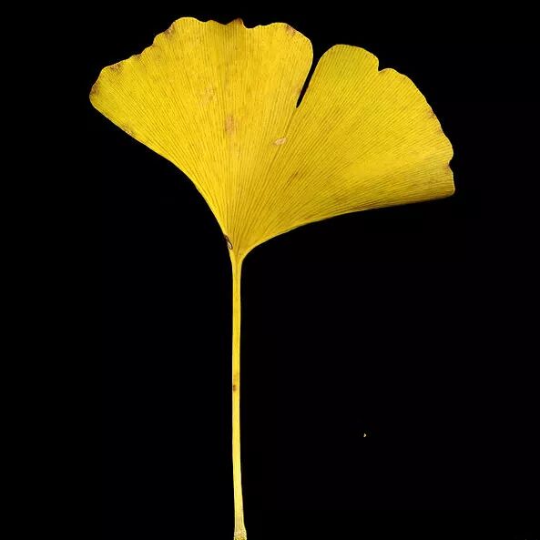 银杏叶片中央有一个较深的缺刻,将叶片分为左右两半,叶脉也以此分中心呈二叉分支,这在种子植物中是不多见的。银杏树的寿命往往很长,但生长缓慢。在我国很多地方(以寺庙为主)均有种植了上千年的银杏古树,而真正野生的银杏却十分稀少,因此银杏目前仍是受保护的濒危植物。
