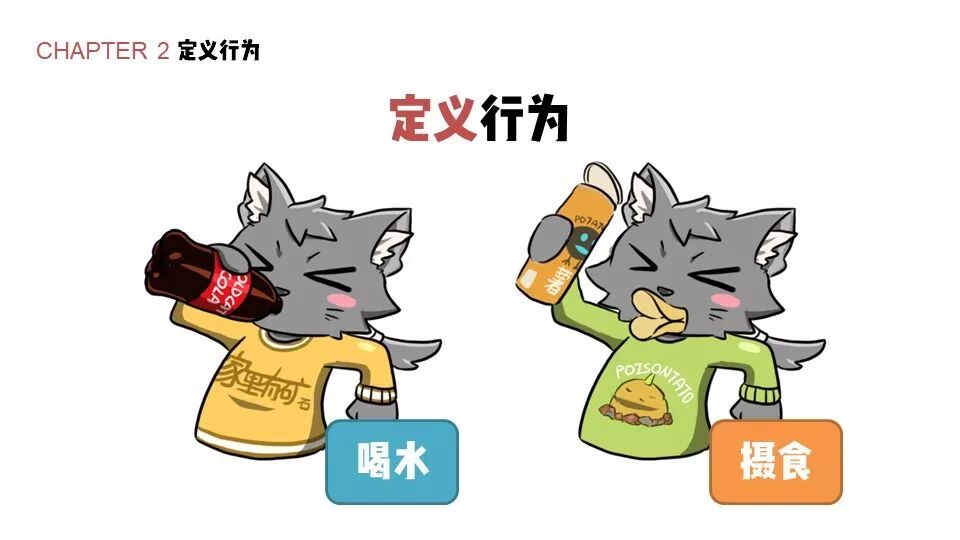 这里也可以举一个例子,我们就拿一位没有到现场的不愿意透露姓名的物种日历编辑老猫老师来举例子。我们可以把老猫老师喝可乐的行为定义为喝水,还可以把他吃薯片的行为定义为摄食。大家看到了,这个定义可以是非常主观的,但是在主观之余,还有两件很重要的事情一定要注意。