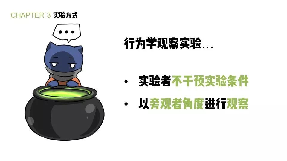 确定好行为的定义之后,接下来就可以选择我们的实验方式。提起实验,大家一般认为是要去实验室里倒腾,实验者要去干预一些条件,控制实验的方向。
