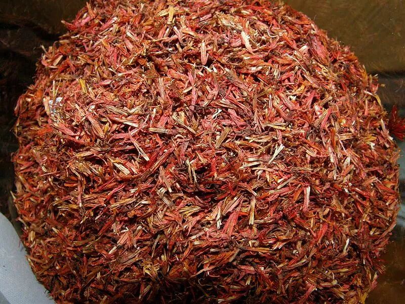 干燥的红花被作为药材使用。图片:松岡明芳 / Wikipedia