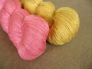 用红花中的红色色素和黄色色素分别染成的丝线。图片:Yuki