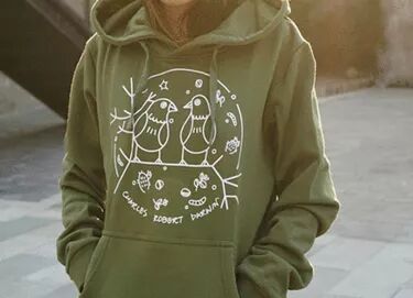 每件卫衣前有揣手的小兜兜,后有宽大的卫衣连帽,在天冷时可以将你完全包裹,温暖你的整个秋季。
