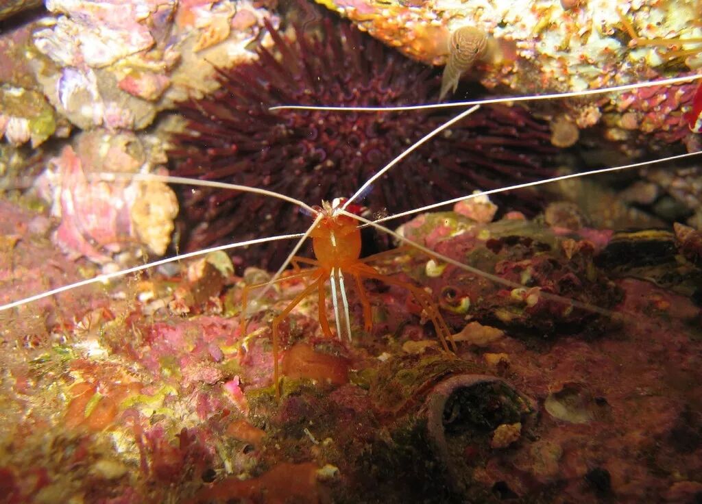 珊瑚间的安波鞭腕虾。图片:PilarMeca / wikimedia