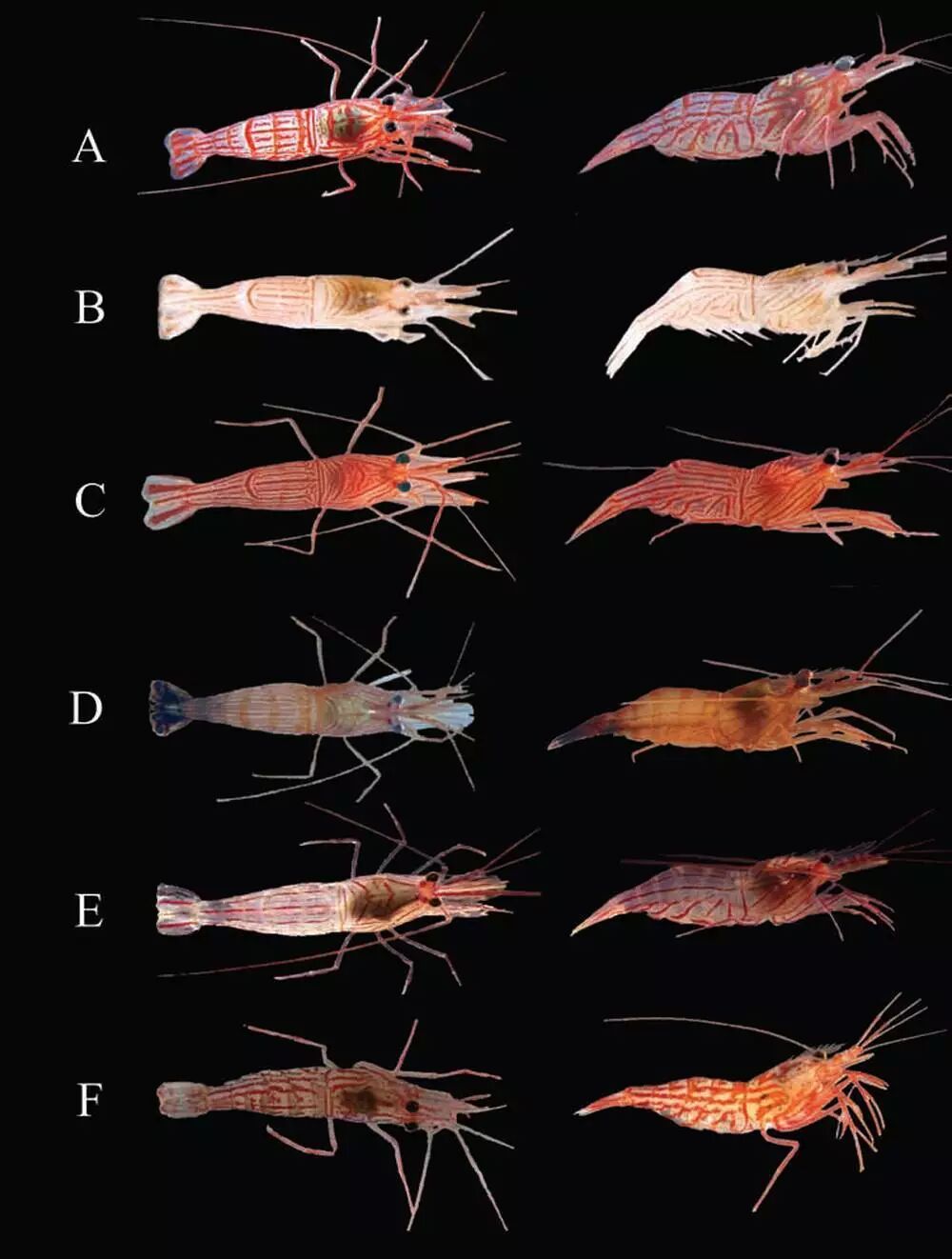 左为安波鞭腕虾,右边为尾纹鞭腕虾。图片:J. ANTONIO BAEZA / Zoological Journal of the Linnean Society(2010)