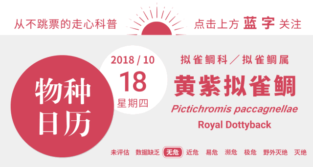 对于绝大多数人来说,可能并没有听说过今天日历主角黄紫拟雀鲷[diāo]Pictichromis paccagnellae的名字。事实上黄紫拟雀鲷确实是一种不起眼的小型鱼类,它们一直默默无闻地生活在遥远的海洋之中,由于距离我们的生活太过遥远,关于它的信息也仅是寥寥数笔。
