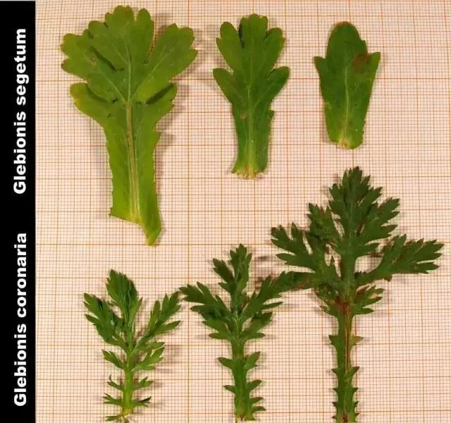 南茼蒿(上)与茼蒿(下)叶片的对比。图片:actaplantarum.org
