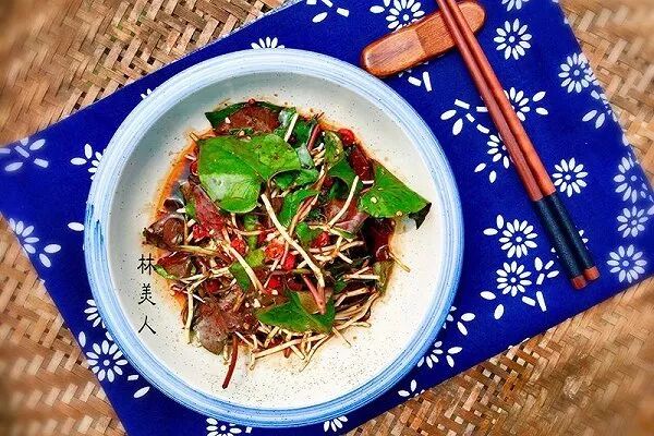 笑且由他笑,好菜我自吃。鱼腥草最流行的吃法是凉拌,浇以红油姜醋,下饭!相比别处以食用根状茎为主,蜀地独偏爱嫩叶,气味更烈,且多了一缕酸涩,回味更加悠长。我第一次吃到炒熟的折耳根是在云南,气味变淡很多,鲜甜则有过之,适合初次接触的人。