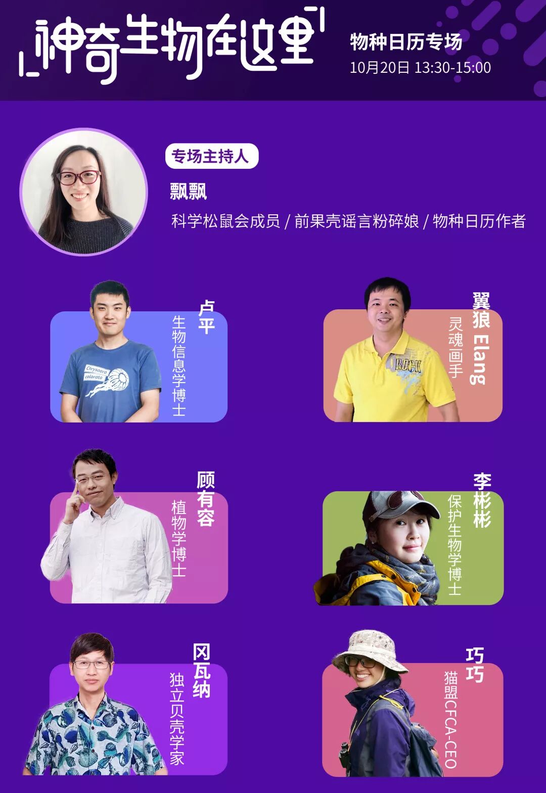 10月20日下午,李彬彬受日历娘的邀请,将现身物种日历专场演讲剧场,讲述她《追逐萌神胖达》的历程。现场将有七位物种日历作者同台分享,从演化到城市,他们将告诉你们最有意思的动植物故事!
