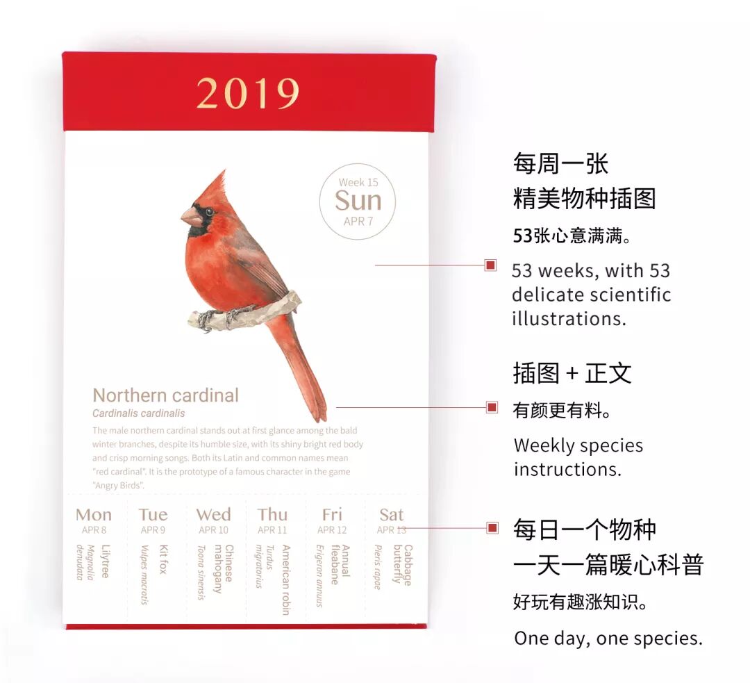 ☟比如《物种日历2019》英文版☟