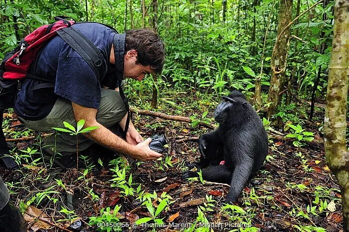 一名游客正记录下他镜头里的黑冠猕猴。图片:Thomas Marent / mindenpictures