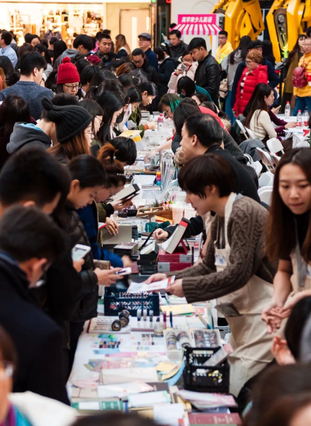 去年年末,我们办了一场现场好似春运的文创市集。现场客流量逾2万人次,人流从早到晚未曾间断,多个摊位首日售罄所有库存!