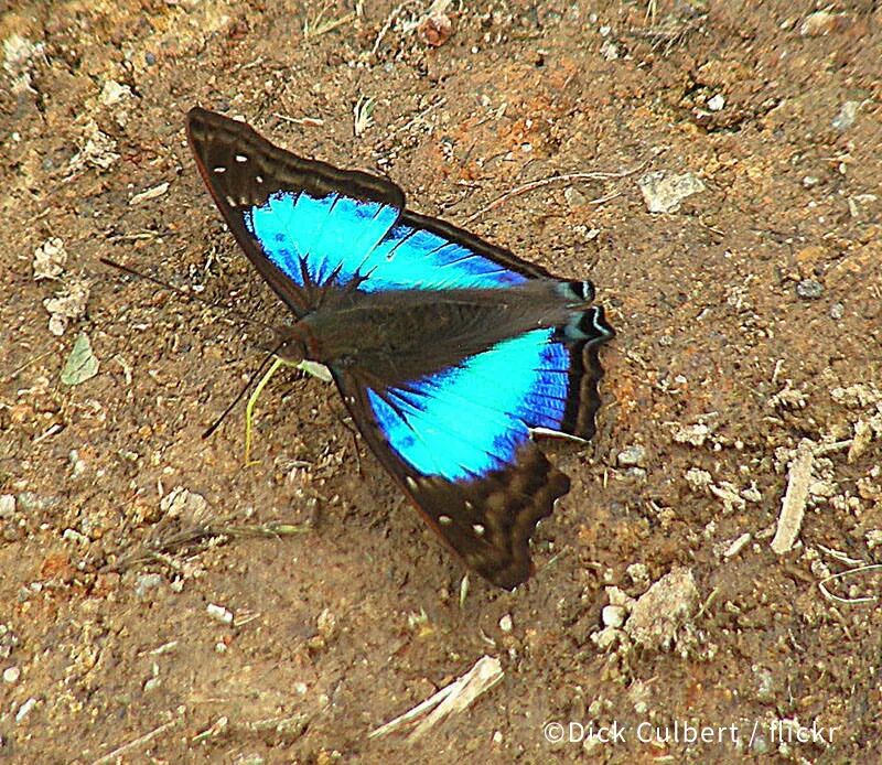 我没有办法离大蓝闪蝶太近,他们很警觉。所以也没有办法看到他们翅膀上的鳞片。巨嘴鸟还笑我,说就算离近了也看不到的,那些鳞片太小了,小到很难看清。