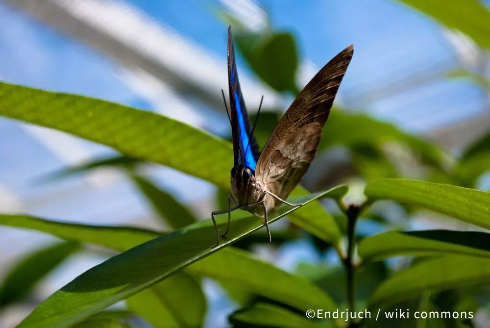 刚看到的时候吓了一跳,那蝴蝶像是凭空出现,又凭空消失一样。在这里闪了一下,又在那边闪了一下。巨大的蓝紫色翅膀,像是在空中跳来跳去一样。
