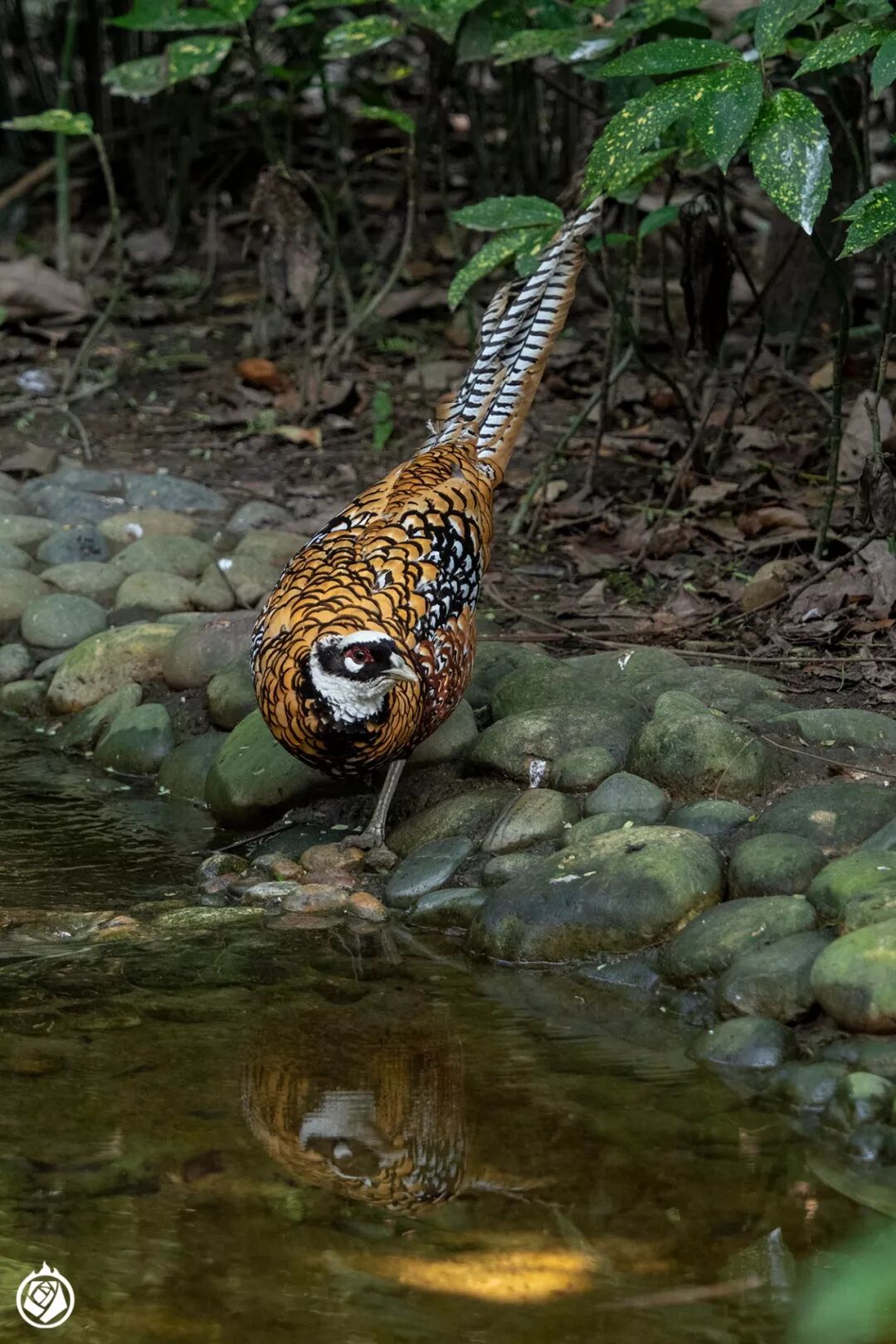 鸟语林里最大最好看的鸟类是几种雉。一般动物园的雉都关在小型的笼舍里,行为并不太丰富。放养到百鸟苑的林地当中之后,这些雉鸡就回到了自己的原生环境中。体型小一些的红腹锦鸡常常落在树丛上,当你的目光穿过树影时,偶尔会看到它们那耀眼如唐纳德·川普的身影,梳理着一头金毛。而大型的白鹇、白冠长尾雉通常出现在林下或是水边,常常顾影自怜。