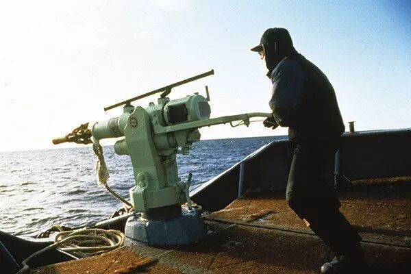 即使相隔一定距离,捕鲸炮也能命中目标。图片:Mark Votier / WDC