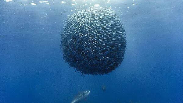 沙丁鱼会整齐地聚集成群,这是一种自我保护机制。图片:《海洋》