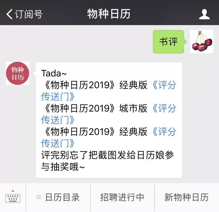 STEP 1 :向物种日历后台回复关键词 #书评#,获取传送门。