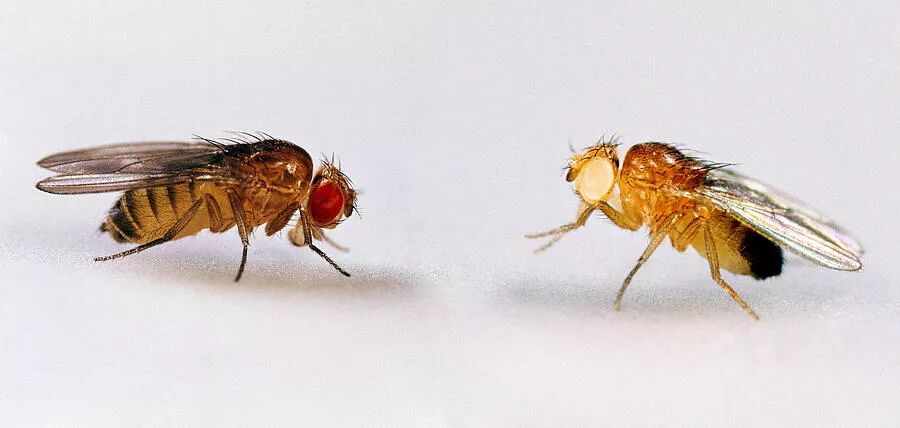 红眼和白眼的黑腹果蝇。图片:fineartamerica.com
