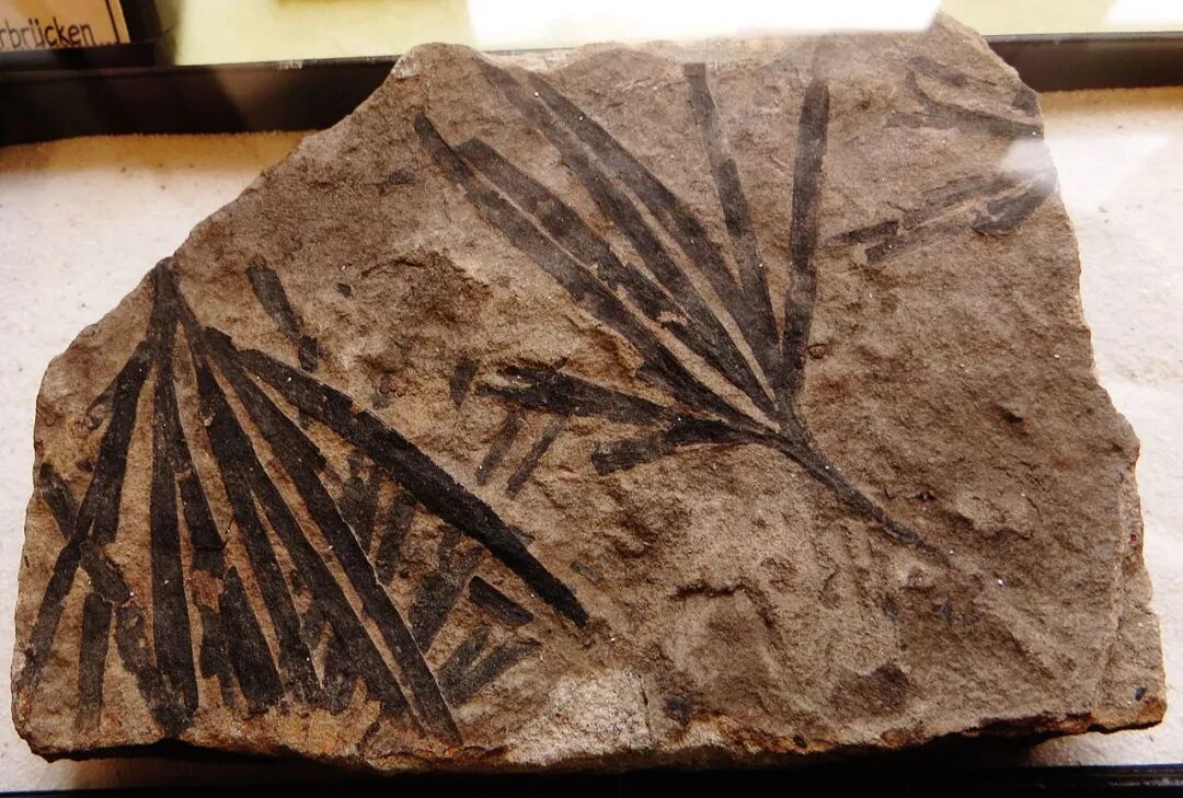 波恩大学自然历史博物馆里的银杏类植物叶片化石。图片:Ghedoghedo / wiki commons