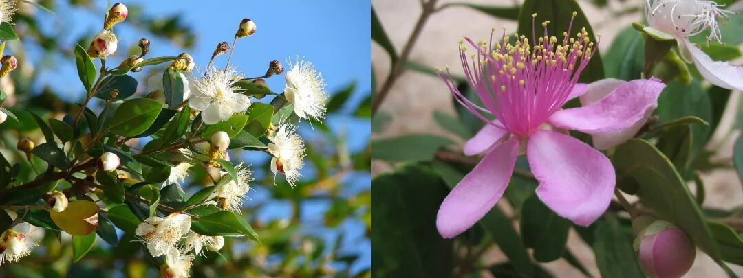 香桃木(左)与桃金娘(右)。图片:Forest & Kim Starr & Fakhruddin Hamzah / wikimedia