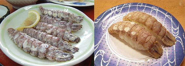 日本的虾蛄刺身和虾蛄寿司。图片:tabelog.com;Lombroso / wikipedia
