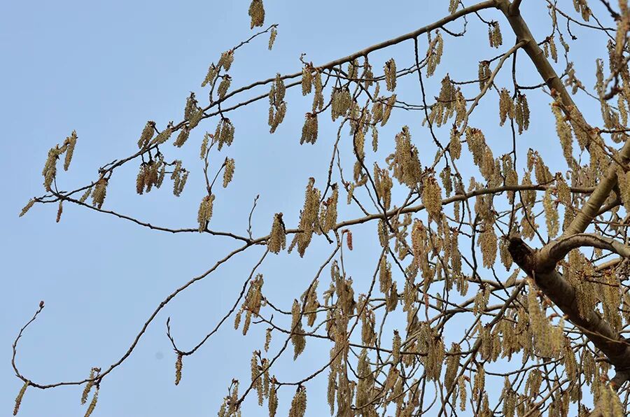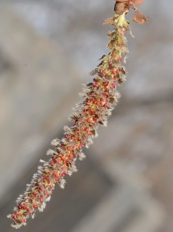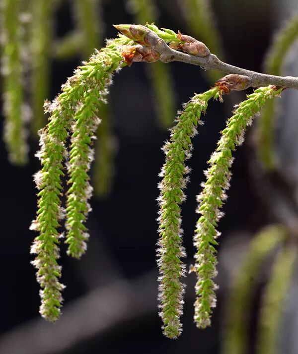 毛白杨正在散粉的雄花序。图片:不认识植物