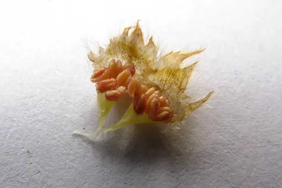 毛白杨的2朵雄花,可以看到红色的花药和带有长毛的苞片,并没有花被。图片:不认识植物