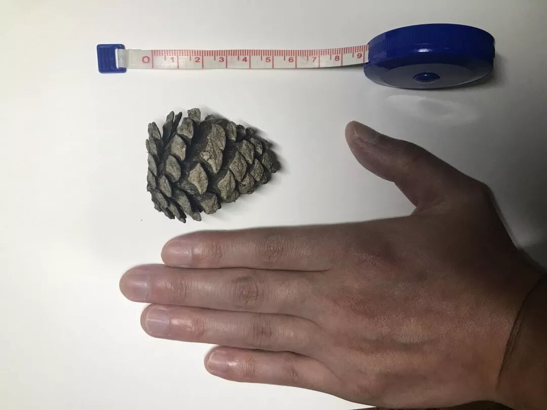马尾松球果的大小及对照。图片:霜天蛾