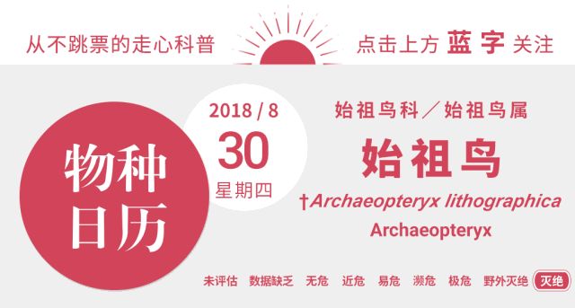 我们已无从得知德国古生物学家梅耶(Hermann von Meyer)看到这片一亿五千万年前的羽毛时的心情——此前已知最早的鸟类化石只存在于晚得多的新生代始新世。梅耶在1861年为这片羽毛发表了学名:Archaeopteryx lithographica——Archaeopteryx意为“古老的翅膀或羽毛”,种本名lithographica意为“印版石画”,中文意译为“始祖鸟”。