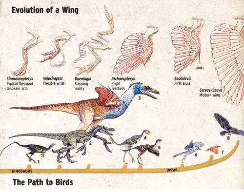 革命性的发现来自东方。从1994年起,中国辽西发现了大量古代鸟类和带羽毛恐龙的化石——中华龙鸟、孔子鸟、热河鸟、近鸟龙、小盗龙,以及郑氏晓廷龙。
