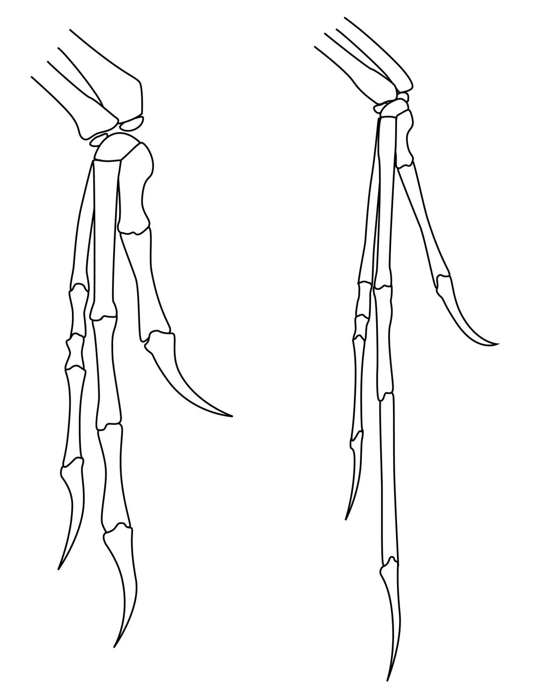 恐爪龙前肢(左)与始祖鸟前肢(右)比较。图片:John Conway / wikimedia