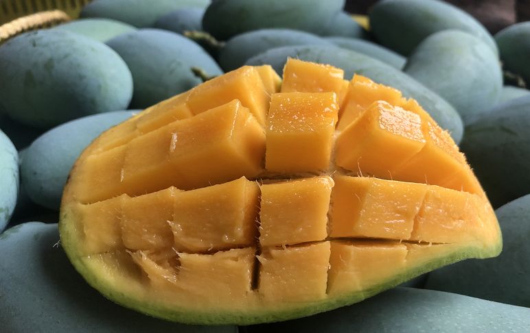 桂七中等的身材、青色的果皮放在一众金黄又小巧的芒果中,显得淳朴又笨拙,但芒果不可貌相,桂七自有其杀手锏:独特浓郁又带有侵略性的香气,就是让你爱上它的秘密武器。