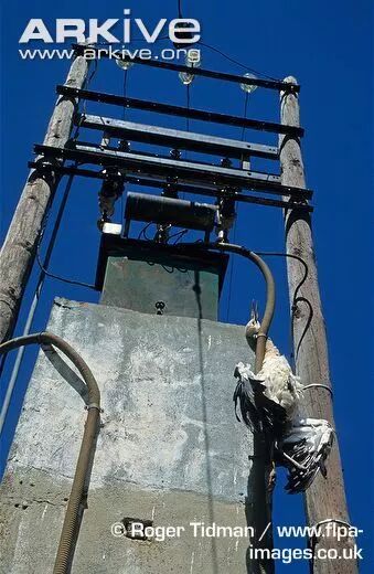 这只试图在电线上歇脚的白鹳,就遭遇了不幸。图片:Roger Tidman / flpa-images.co.uk