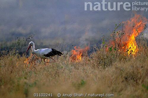它们称得上是完全的机会主义者,不会放过任何捕食的机会。无论在繁殖地还是越冬地,白鹳都喜欢呆在犁地或割草的拖拉机、大型食草兽类后面,以伺机捕捉受惊扰而四处奔逃的昆虫、鼠类或两栖爬行类等。就连燃烧的野火旁,也会出现白鹳专注觅食的身影。